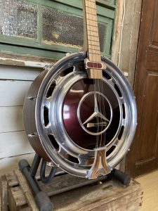 Eine außergewöhnliche dreisaitige Hubcap Guitar mit Mercedes-Radkappe. Diese Gitarre ist komplett in Handarbeit entstanden, inklusive des individuell angefertigten Koffers. Die Radkappengitarre hat einen unverwechselbaren Klang, ist rein akustisch spielbar oder mit optionalem Pickup […]